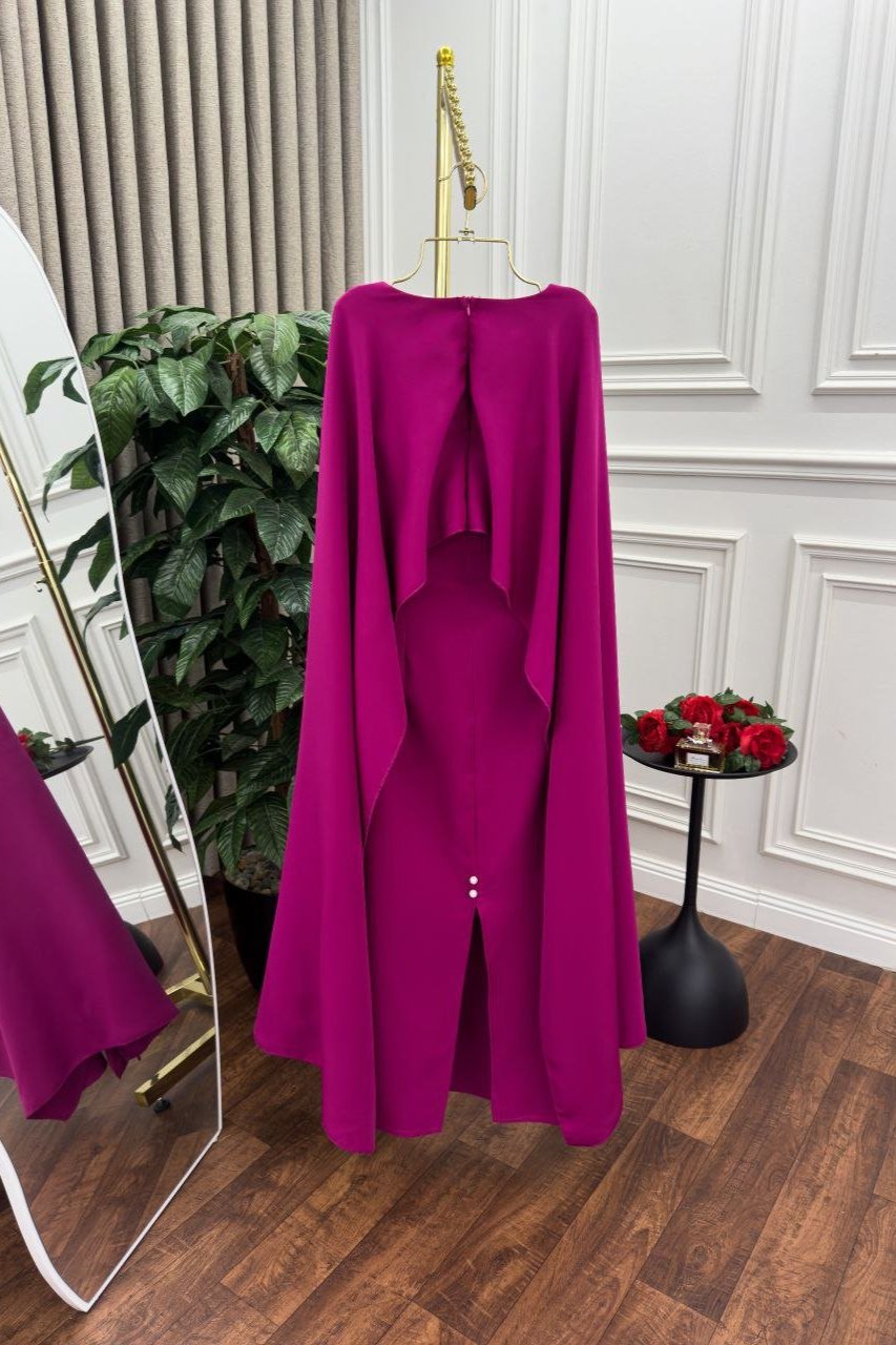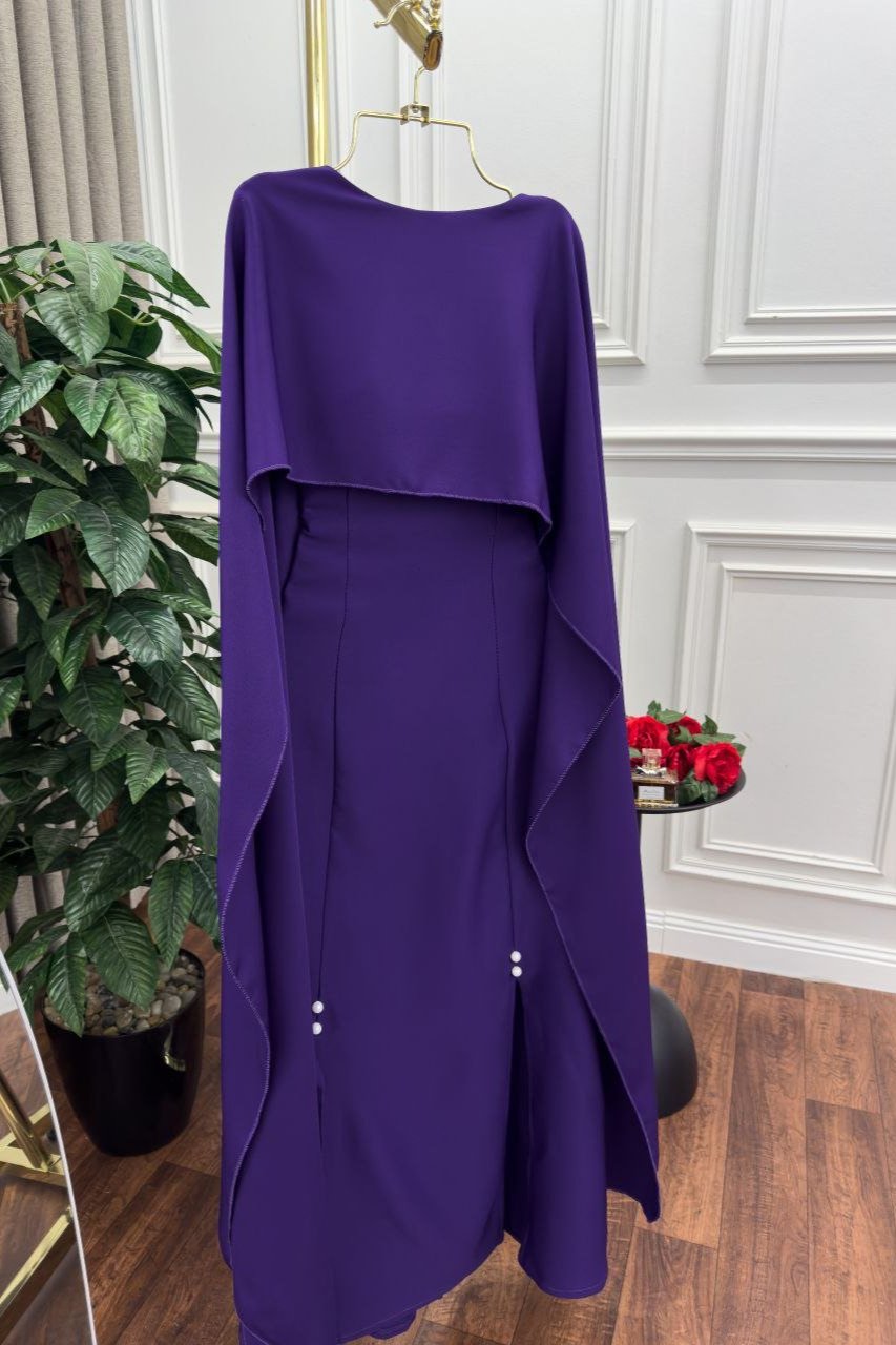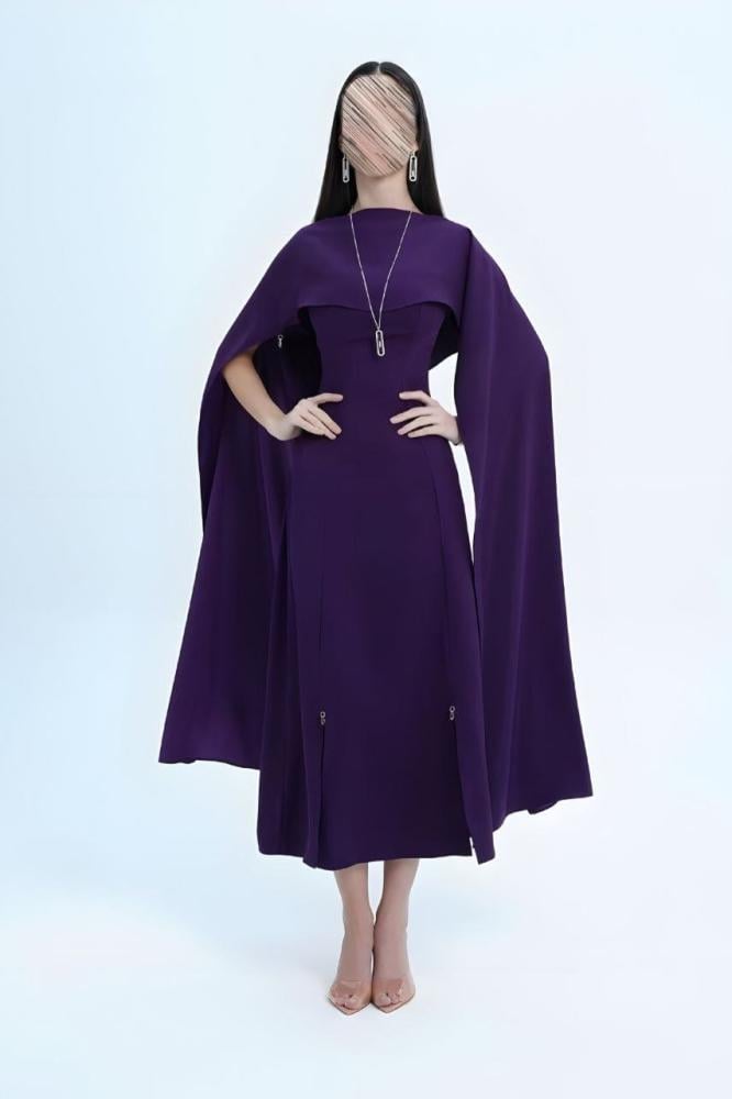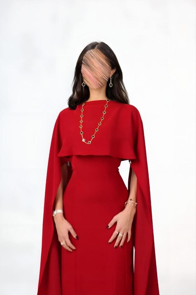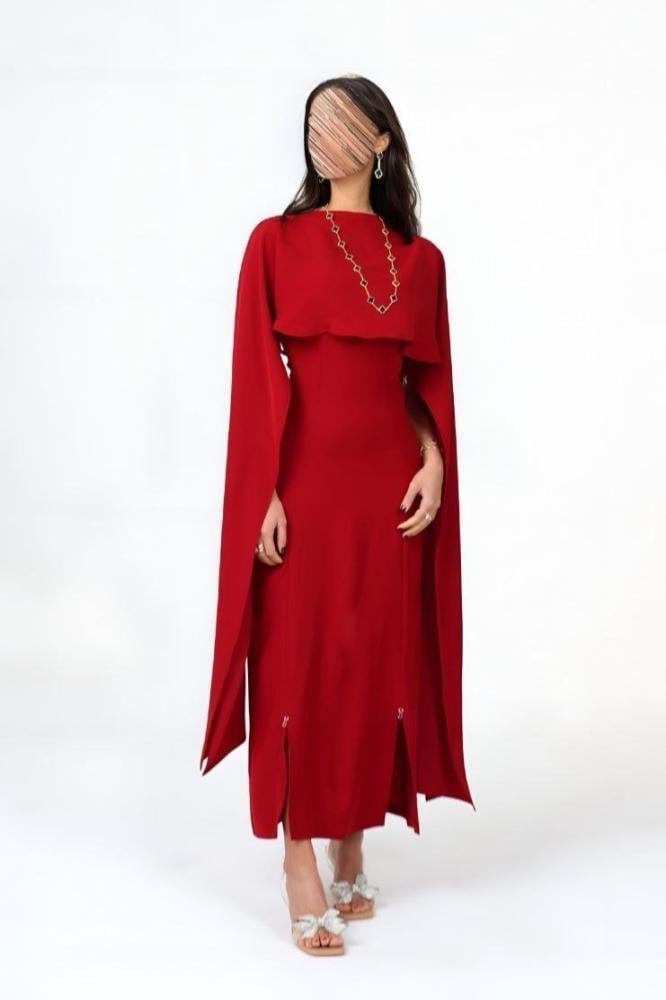 فستان ناعم أنيق مصمم بقصة راقية تبرز أنوثتك بفخامة. يتميز بأكمام كاب واسعة تضيف لمسة درامية ساحرة،