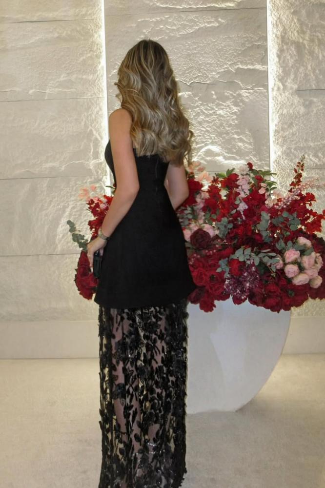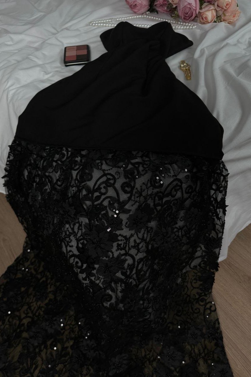 فستان راقٍ بستايل عصري، يتميز بقصته الضيقة العلوية بدون أكمام لمظهر أنثوي جذاب، بينما ينسدل بتصميم شفاف مزين بالتطريزات اللامعة التي تضيف لمسة فخامة وأناقة. مثالي للسهرات والمناسبات الخاصة، يمنحك إطلالة راقية وجذابة.