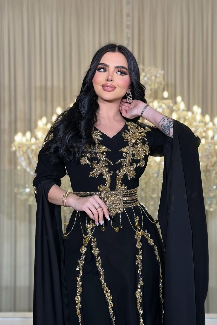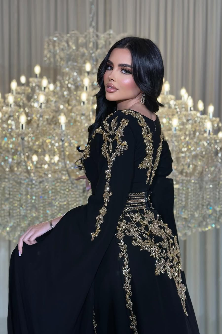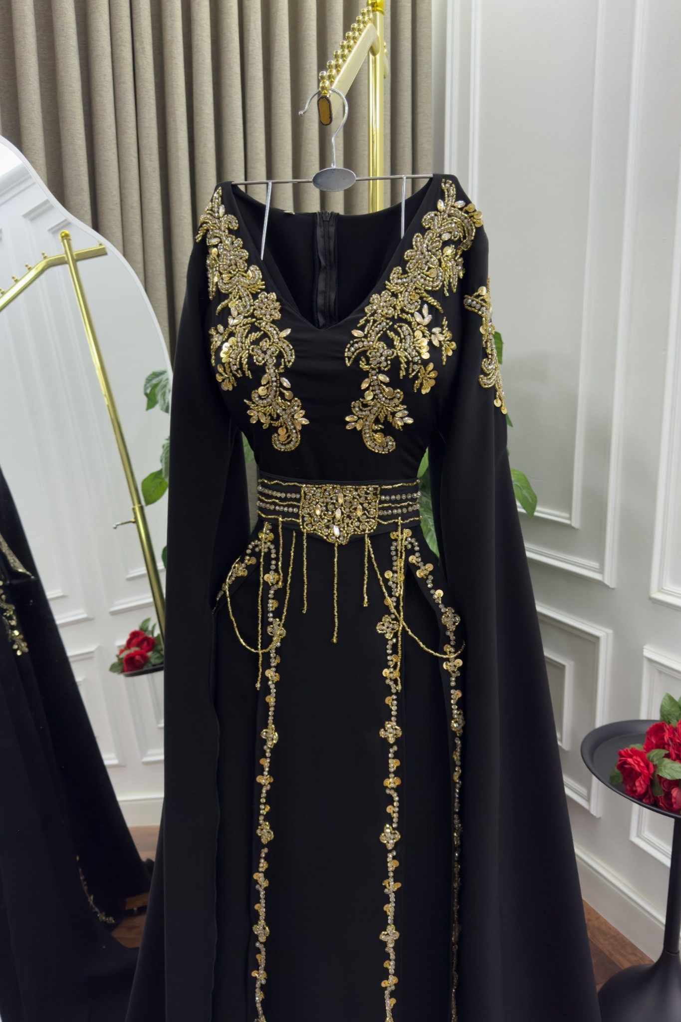قفطان أسود مطرز بالذهبي مع حزام ملكي فخم