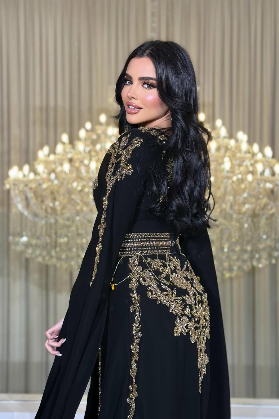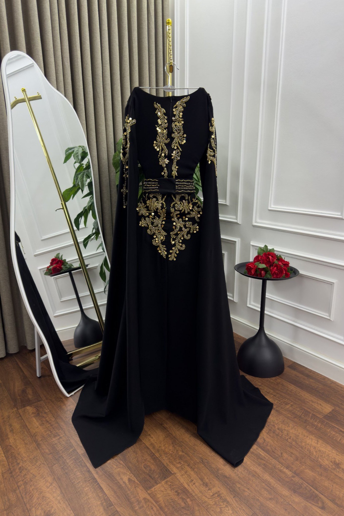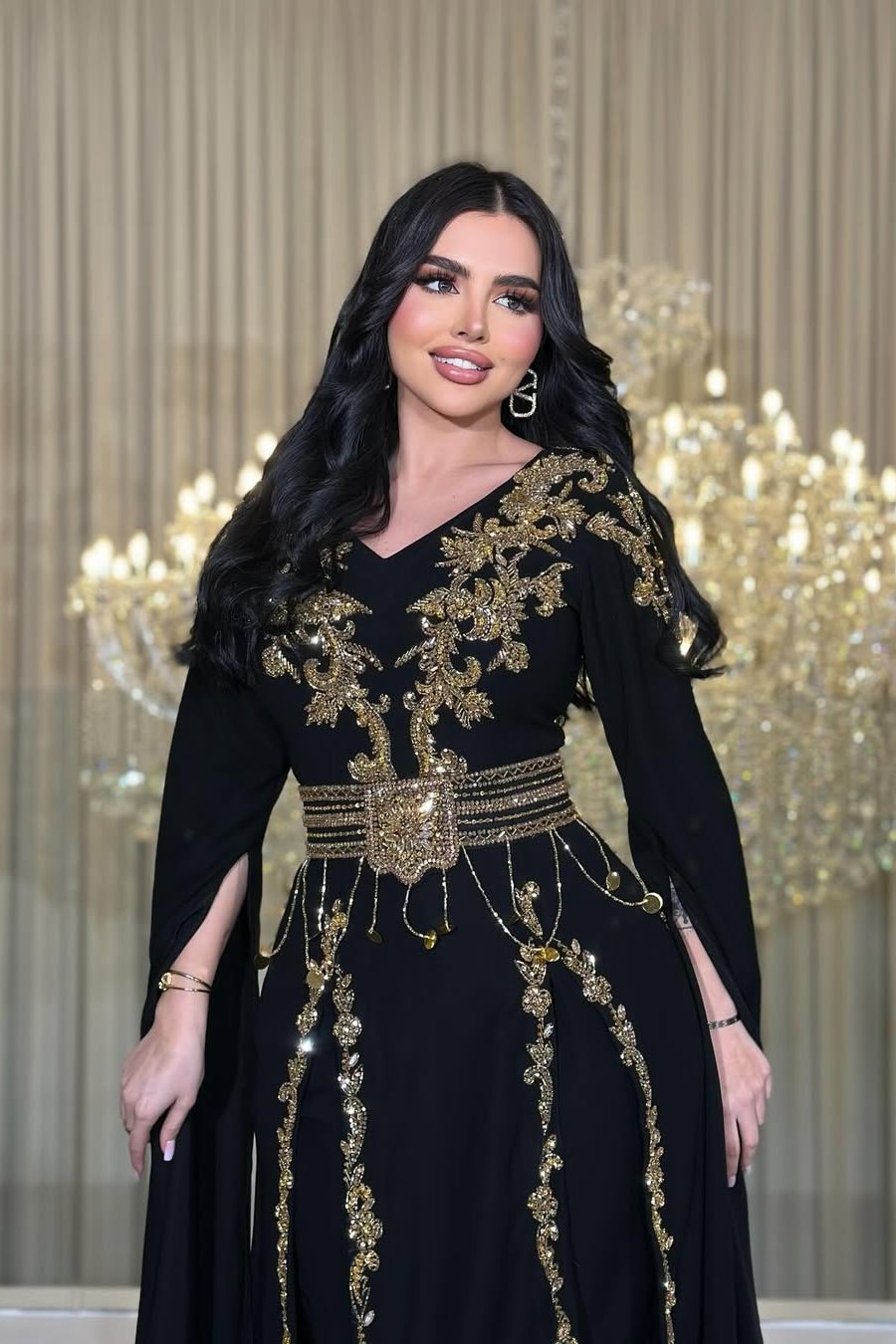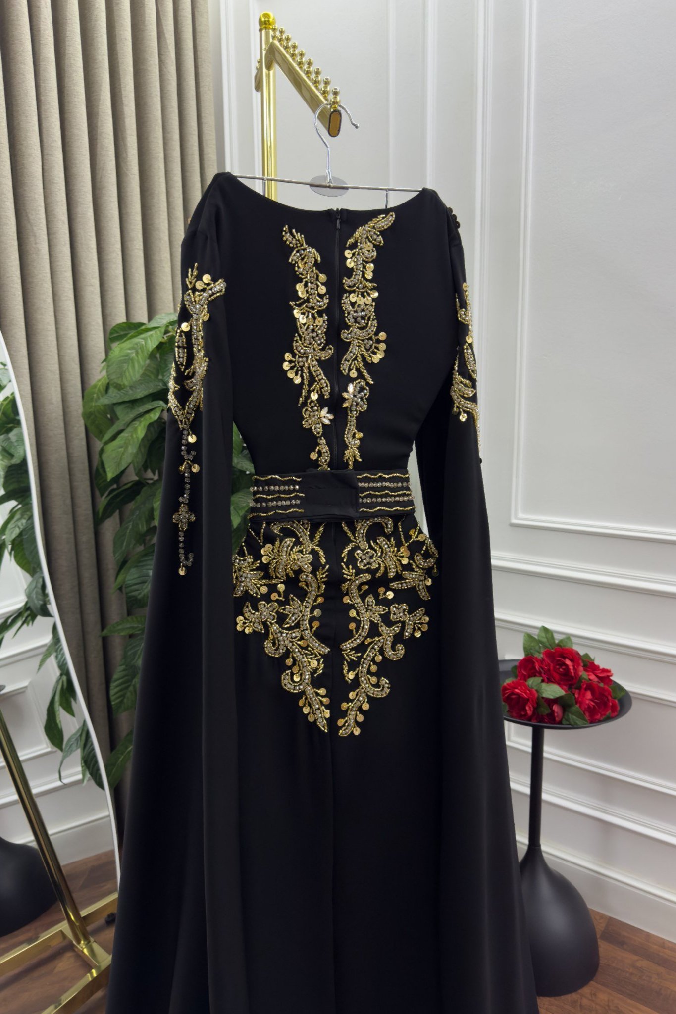 قفطان أسود مطرز بالذهبي مع حزام ملكي فخم