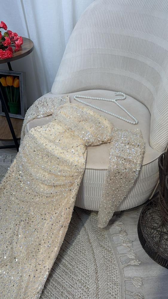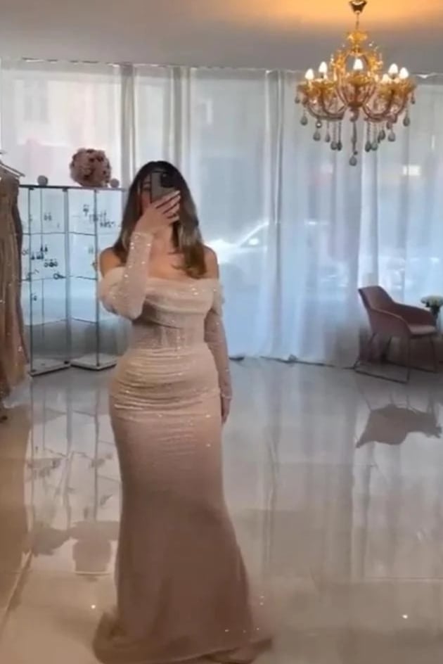 فستان سهرة أوف شولدر ضيق مطرز بالترتر