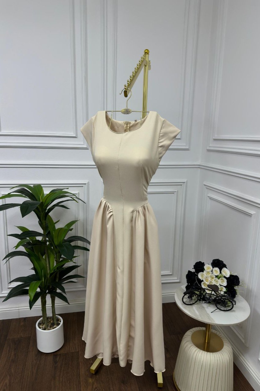 مع تنورة واسعة تمنح حرية وانسيابية في الحركة. مناسب للمناسبات الخاصة والإطلالات اليومية الراقية،
