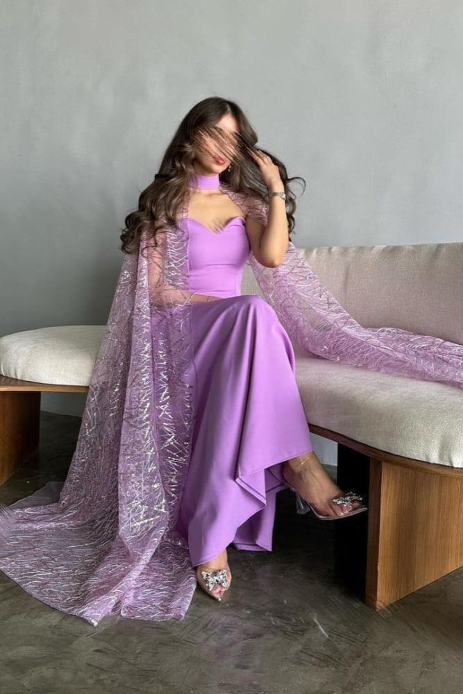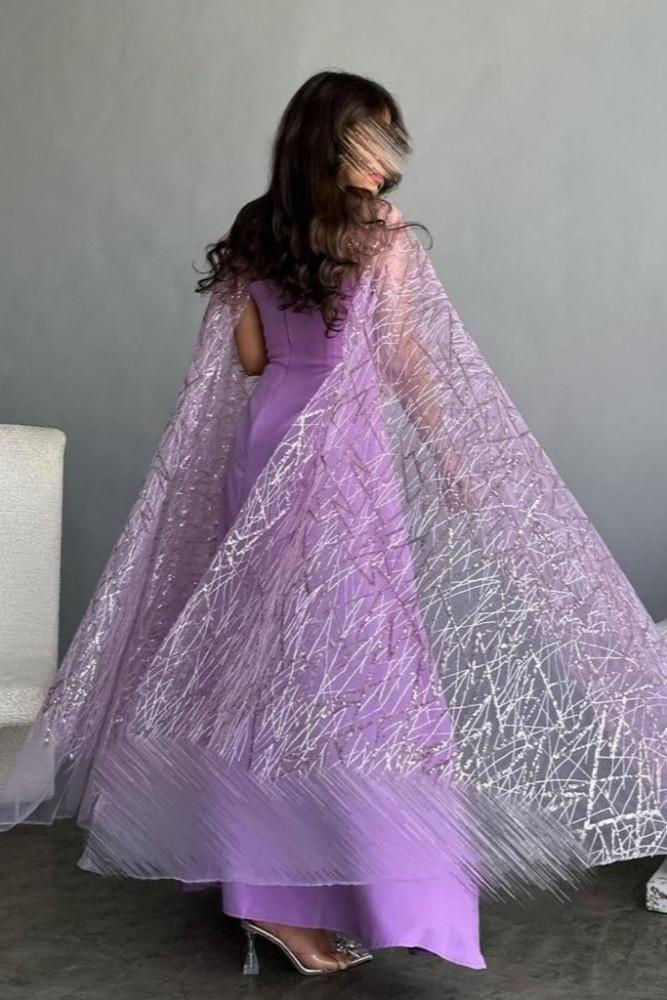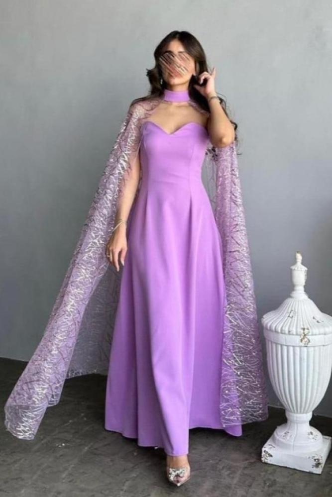 استمتعي بإطلالة ساحرة مع هذا الفستان الذي يجمع بين البساطة والفخامة. يتميز بقصة مستقيمة وانسيابية تبرز القوام بأناقة، مع فتحة رقبة على شكل قلب تضيف لمسة أنثوية ناعمة. يرافق الفستان عباءة شفافة طويلة مزينة بنقوش براقة تضفي لمسة ملكية راقية، مما يجعله مثالياً للسهرات الفاخرة والمناسبات الخاصة.