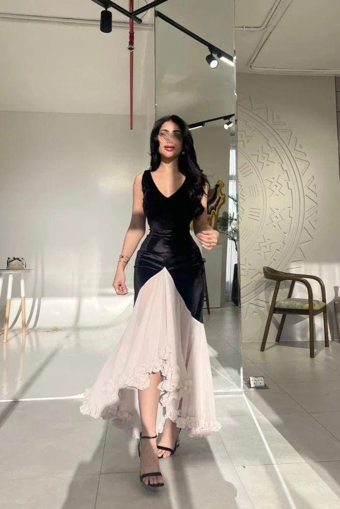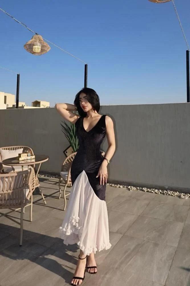 فستان ميدي أنيق بتصميم عصري، يتميز بأكتاف مكشوفة وتدرجات لونية جذابة تضيف لمسة راقية. القصة الانسيابية تمنح إطلالة أنثوية مثالية للمناسبات المسائية والسهرات الخاصة.